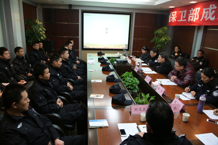 1月8日,万搏体育建设集团保卫部成立暨培训会议在集团公司四楼会议室召开,武汉市公安局经保处办公室主任姚鑫、洪山分局治安大队大队长程爱民及管理组成员、梨园派出所所长魏媛、梨园派出所教导员王兵、梨园派出所副所长刘文庆、梨园派出所辖区片警吴新建等应邀出席了本次会议,与会人员还包括集团公司董事长程理财、人事行政总监张玉琼、人力资源部经理孙宝环、办公室主任黎乐、保卫部经理徐刚、副经理董盼及保卫部全体员工。会议由人事行政总监张玉琼主持。