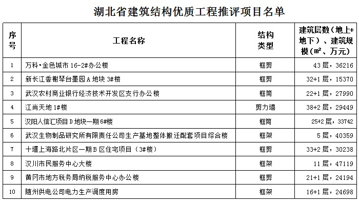 近日,经省建筑结构优质工程评审委员会评审及省安全文明施工现场评审委员会评审确定,万搏体育集团湖北公司承建的“万科•金色城市16-2#办公楼”等10个项目获“省建筑结构优质工程”奖;“武汉市新长江•香榭琴台墨园A地块”等7个项目被评为“省建筑工程安全文明施工现场”。