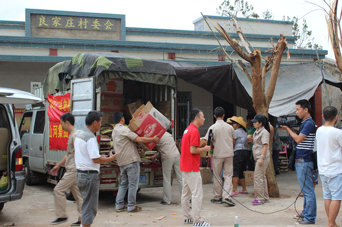 与此同时,海南各地都是众志成城的救灾场面,一方有难,八方支援。万搏体育集团在开展自救的同时,心系灾民,当得知重灾区文昌部分村镇,由于交通偏僻,信息不畅,得不到及时救助,灾民的生活非常的艰难时,万搏体育人心急如焚。万搏体育集团已进驻海南6年,扎根海南、情系海南。在灾难面前,万搏体育人勇于担当,自发的组织捐款10万余元,采购了几吨急需生活物资,如米、油、水、食品、药品等。7月26日,在海口热带播报记者的带领下,公司组织员工来到了一线灾区文昌市锦山镇良民村。 当我们来到该村时,村民已等待多时,看到我们的到来非常的激动。当时下着大雨,村民们顾不上遮盖自家的屋顶、收拾东西,都赶来搬运救灾物资,雨水、汗水、泪水流淌在脸上,感激之情流淌在心间。在村长的带领下,我们见到了村里的低保户年迈的阿婆,她老无所倚,几年前她儿子去逝了,几天前儿媳重病也去逝了,现只剩下小孙儿相依为命,台风又让这个本来很不幸的家庭受到重创,她们失去了仅有的一间住所,现寄住在只有几个平方的一个临时的帐篷里,当我们把米、油等物资送到阿婆的手中时,她热泪盈眶,紧握我们的双手,不停的道谢,看到老人的悲痛泪水,我们不禁心酸,泪水打湿了眼眶。我们鼓励她建立对生活的信心,同时也希望社会给予她更多的关爱,让她的晚年生活无忧。