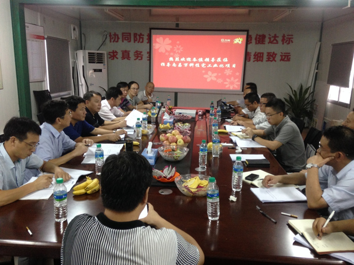 南昌万科项目部和集团项目部的相关人员,分别向专家评审团介绍了南昌万科海上传奇工业化装配式pc楼的工程概况、工艺流程及节点施工控制方案,同时专家及各单位代表分别阐述咨询了各自的观点及疑问。为进一步完善工业化装配式施工工艺,评审团及与会领导还深入施工现场进行指导与探讨。