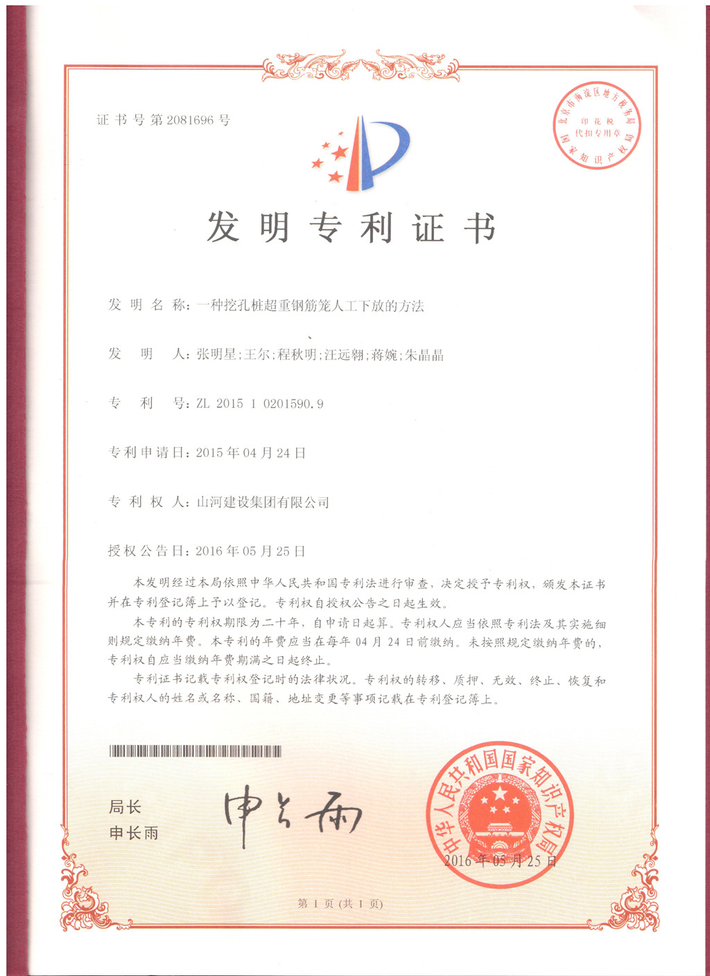 7月4日,万搏体育集团技术发展中心研发的“一种挖孔桩超重钢筋笼人工下放的方法”获得由国家知识产权局授权的发明专利(专利号:ZL201510201590.9)。这是继去年获得一项发明专利后,万搏体育集团再一次获得发明专利,实现了科技的进步与技术的创新。