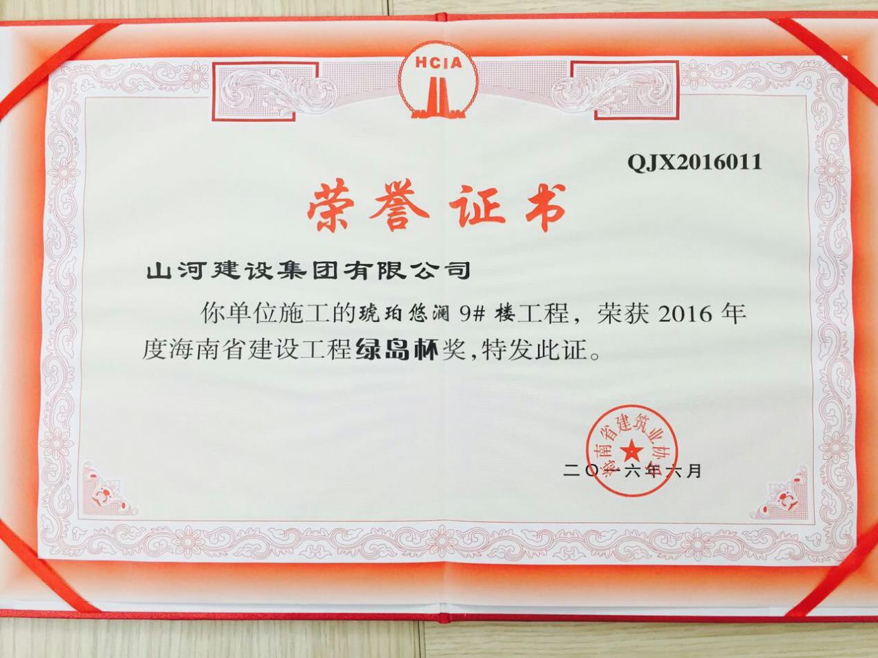 7月14日,海南省建筑业协会组织开展的2016年度海南省建设工程“绿岛杯”奖的评选工作已经结束,经过严格的评审和公示,万搏体育集团海南公司承建的琥珀悠澜项目9#楼荣获海南省建设工程“绿岛杯”。