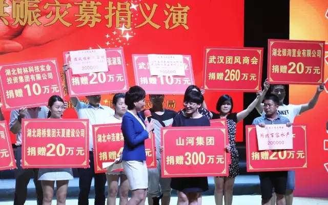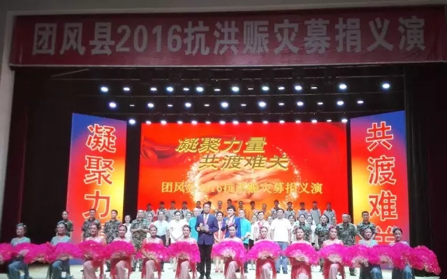 7月22日晚,以“凝聚力量 共渡难关”为主题的2016团风县抗洪赈灾募捐义演在团风县青少年活动中心举行,万搏体育集团现场捐赠300万元支援家乡抗洪救灾、重建家园。