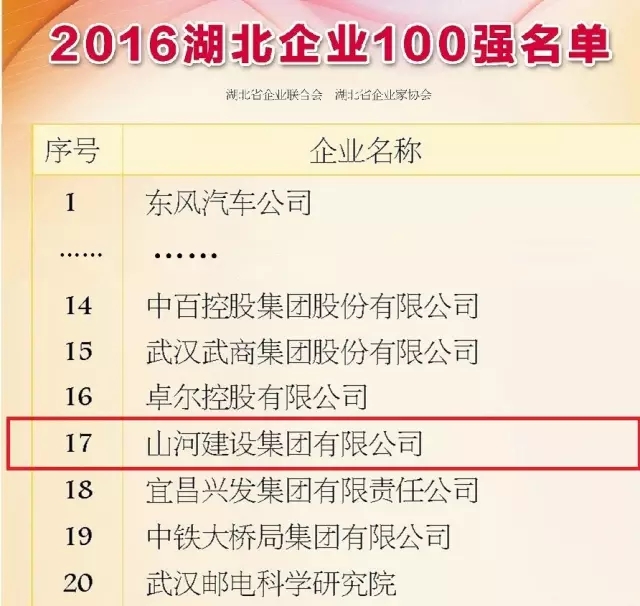 9月8日,2016湖北企业100强发布,东风汽车、中建三局、武钢集团位居前三甲,万搏体育集团以304.85亿元的营业收入排名第17位,荣登湖北企业百强榜。