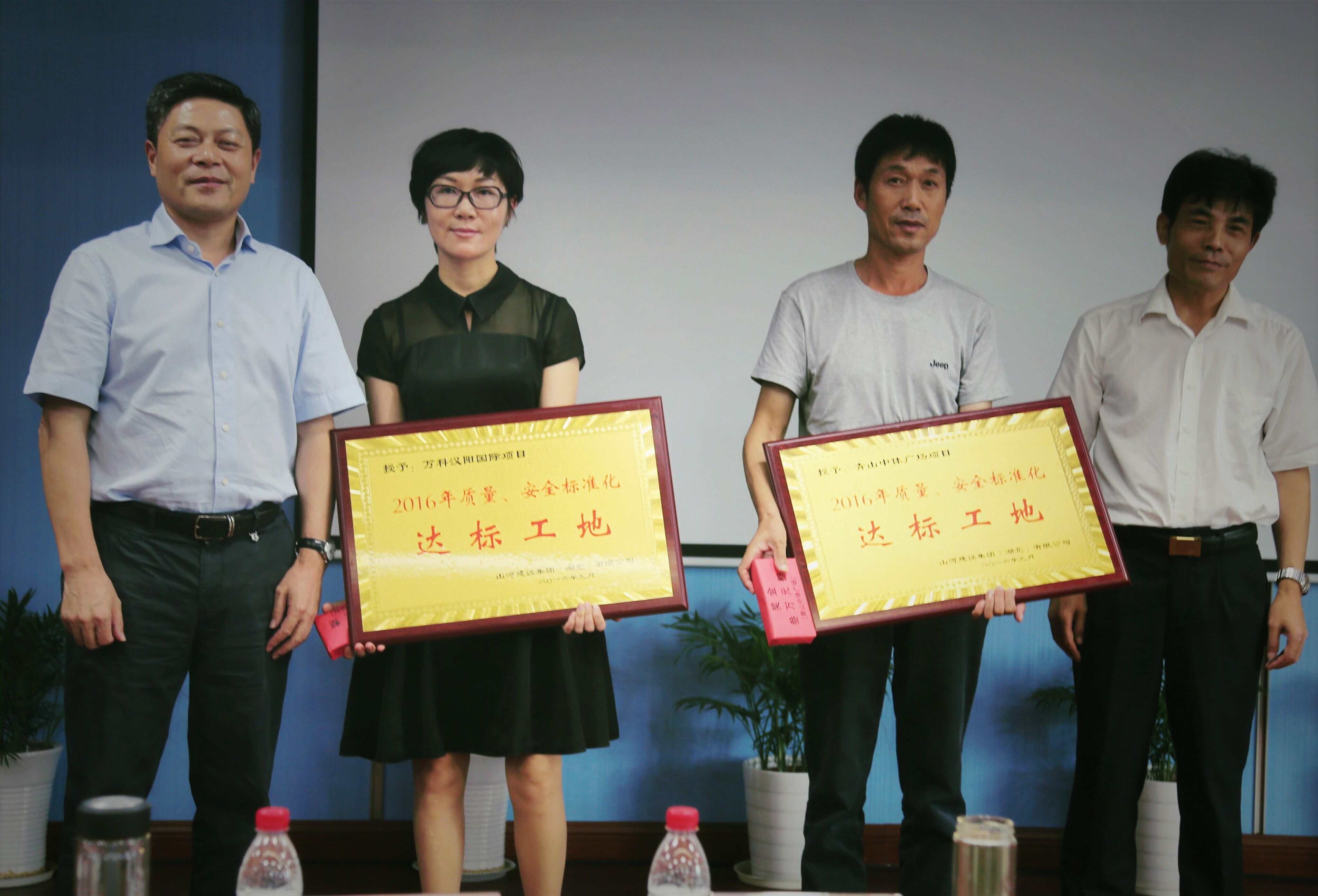 按会议议程,集团总工程师程秋明宣读《湖北区域公司标准化工地建设管理规定》及《表彰决定》,对万科汉阳国际和青山中体广场两个标准化工地建设达标项目进行了现场表彰,集团董事长程理财亲自颁奖。