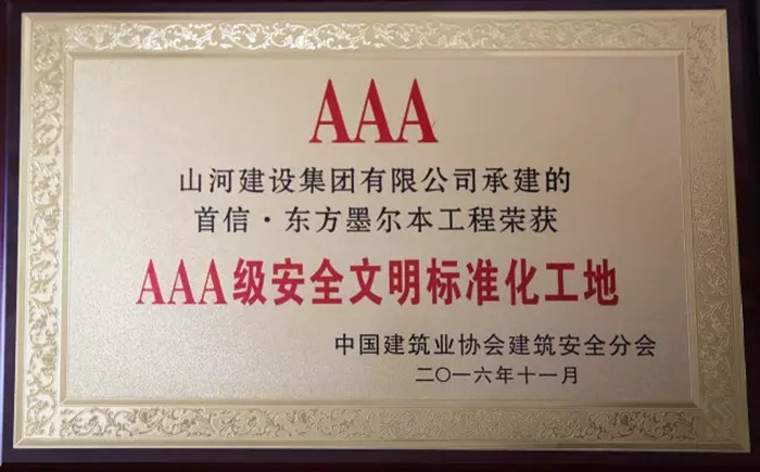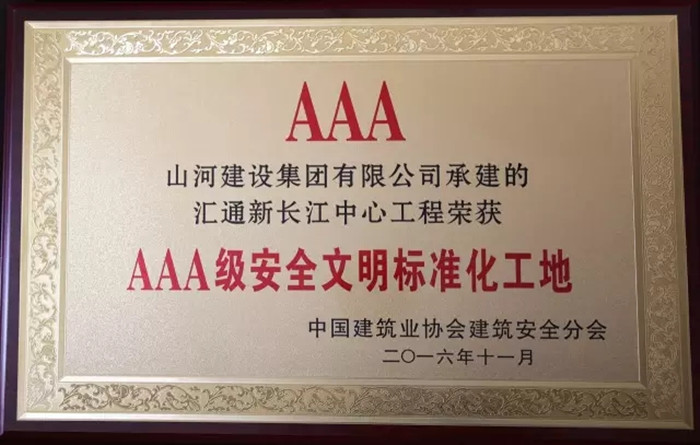 11月30日,2016年中国建筑业协会建筑安全分会年会暨理事会在合肥召开。由万搏体育集团承建的襄阳首信•东方墨尔本项目与武汉汇通新长江中心项目双双荣获2016年“AAA级安全文明标准化工地”称号。