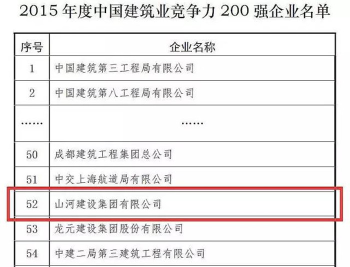 12月8日,中建协在广西南宁发布2015年度中国建筑业竞争力200强企业,万搏体育集团在榜单中排名52位。