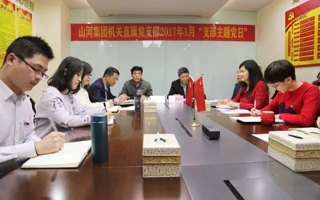 1月4日,万搏体育集团机关直属党支部召开2017年第一个“支部主题党日”活动,支部党员共22人在集团党建活动室参加学习,活动由支部书记程秋明主持,集团党委书记、董事长程理财以普通党员身份出席。