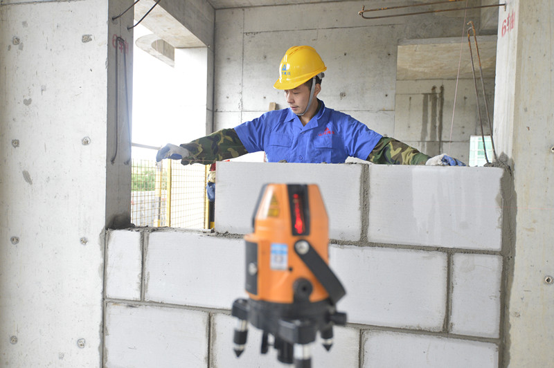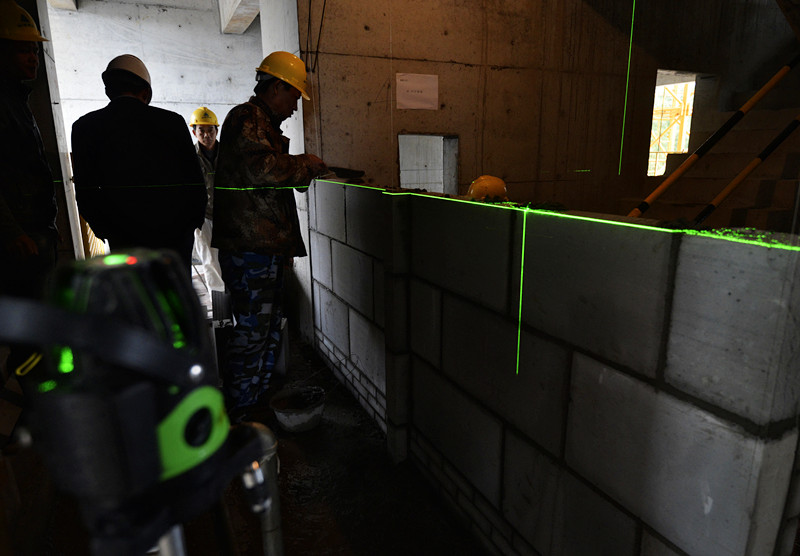 评委们拿着激光仪、靠尺等测量工具,在众多选手的见证下,对砌体的水平度、垂直度、灰缝的考量,均精确到一个毫米为单位。对木工配模和模板安装,除了现场技能考察外,还要考察比赛前的测量放线,模板定位控制,均以毫米为单位计算。