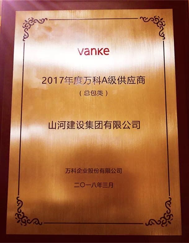 万搏体育建设集团再获万科A级供应商荣誉