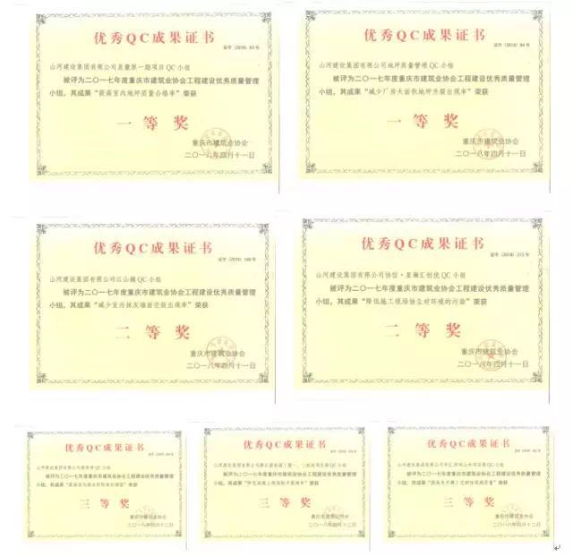▲西南公司各项目QC发布成果荣誉证书