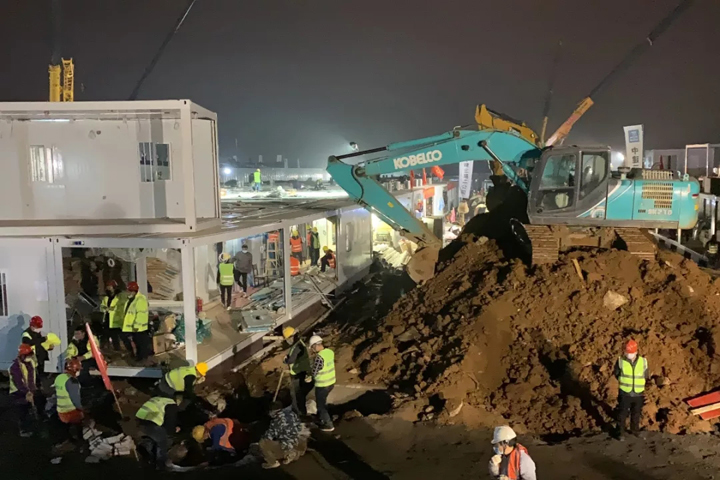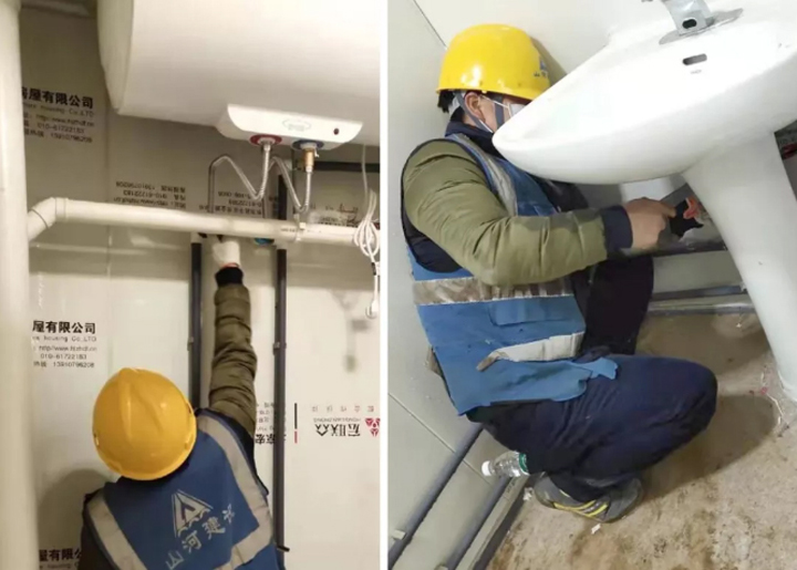而这一天的背后,万搏体育集团“火神山”突击小组的建设者们也迎来了最后的“冲刺”阶段。凌晨,施工现场仍是一派热火朝天,一边是淋浴间、洗漱台等设备设施在进行最后收尾安装和检查,一边水电工人正在紧锣密鼓地安装配电房的电缆……施工人员挑灯夜战,24小时不眠不休,为了能在2月3日正式收治病患全力冲刺。