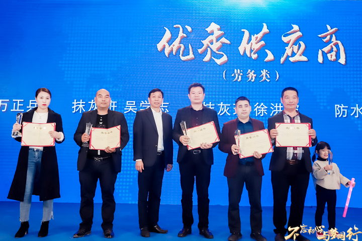 ▲常务副总经理刘永国为优秀供应商(专业分包类)颁奖