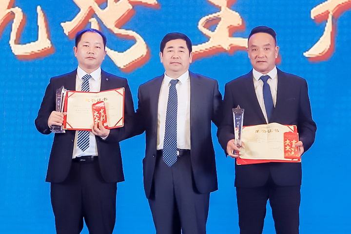 ▲副总经理刘立新为优秀员工和优秀生产经理颁奖
