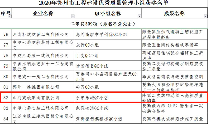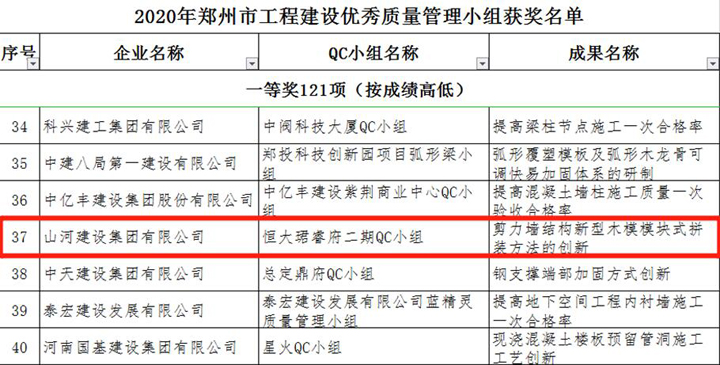 3月23日,郑州市建筑业协会发布《关于表彰2020年郑州市工程建设优秀质量管理小组活动成果的通知》,万搏体育建设集团河南公司申报的三项成果榜上有名,恒大珺睿府二期QC小组获得一等奖,清华忆江南二期QC小组、永丰乐城QC小组分别获得二等奖。