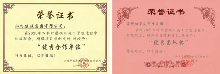 4月9日,万搏体育建设集团江西公司被江西华思房地产开发有限公司授予“优秀合作单位”称号,表彰江西公司承建的万科红墅项目在施工管理过程中积极配合,确保项目顺利交付。同时,万科红墅万搏体育项目部荣获“优秀团队奖”。