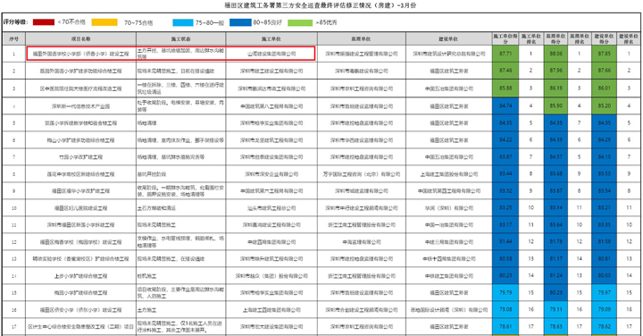 近日,在深圳市福田区建筑工务署组织的第三方安全巡查评估中,万搏体育建设集团深圳公司承建的福田区外国语学校小学部项目综合评分名列第一。
