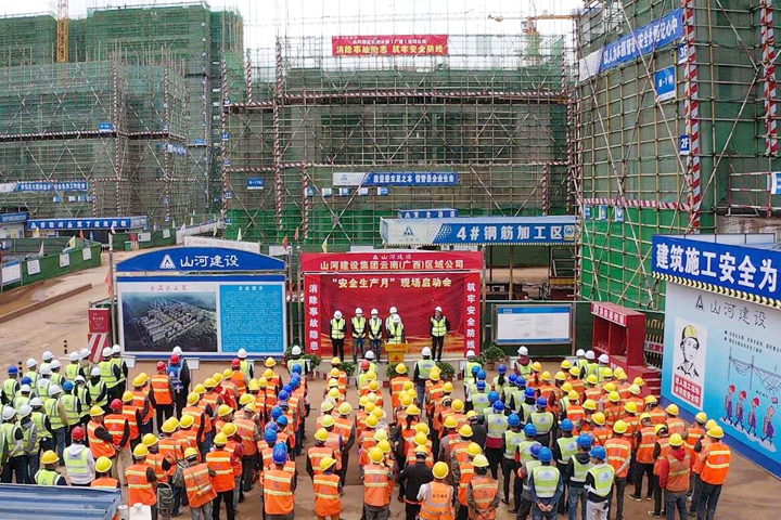 5月29日,以“消除事故隐患,筑牢安全防线”为主题的万搏体育建设集团云南(广西)公司2020年度“安全生产月”现场启动会在古滇水云里项目部举行,来自公司各项目的管理及施工人员等200余人参加了活动。