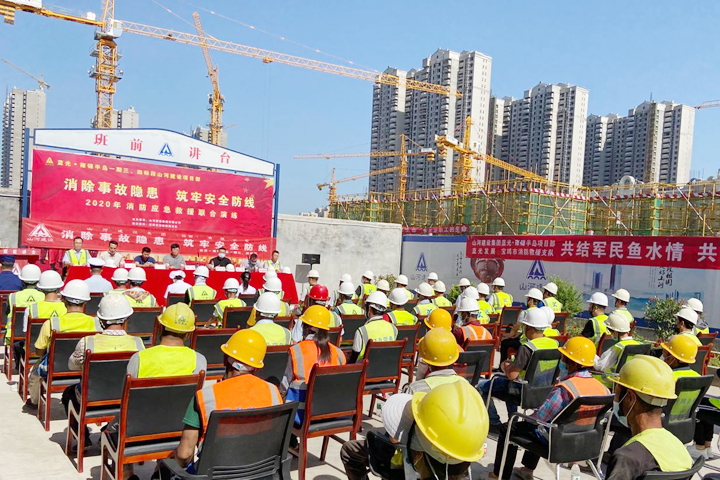 6月30日,万搏体育建设集团陕西公司联合宝鸡市消防救援支队、宝鸡市高新人民医院等单位,在蓝光·雍锦半岛一期三、四标段项目举行消防应急联合演练活动,普及消防知识及现场急救操作技能,提高员工的救火救灾、自防自救能力,检验突发事件的快速反应能力,为遏制重大事故的发生提供保障。
