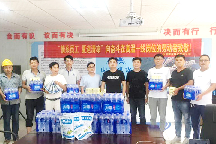 河南公司副总经理詹成义、党支部书记孙楚春代表公司经营班子,带队前往各项目部,为大家送去冷饮、绿豆、防暑必备药品等,并带去了公司的问候,嘱咐一线员工在夏季施工过程中注意防暑,确保身体健康,牢记安全生产。