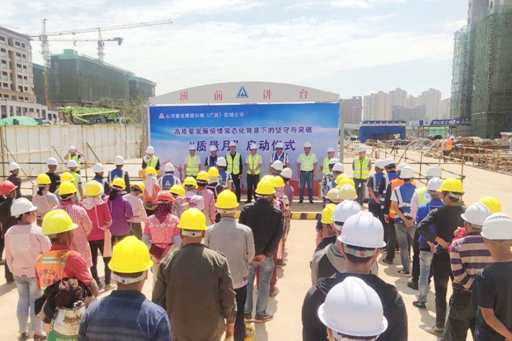 9月1日,万搏体育建设集团云南(广西)公司2020年“质量月”活动启动仪式在中骏云古小镇8号地块项目举行,活动以“高质量发展:疫情常态化背景下的坚守与突破”为主题,旨在进一步强化质量意识,提升质量管理水平,切实做到逢建必优。公司工程团队,各项目部项目经理、技术负责人、质检员等150余人参加了活动。