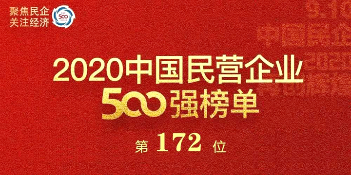 9月10日,全国工商联主办的2020中国民营企业500强峰会在北京举行。万搏体育集团荣登“2020中国民营企业500强”榜单,名列第172位。