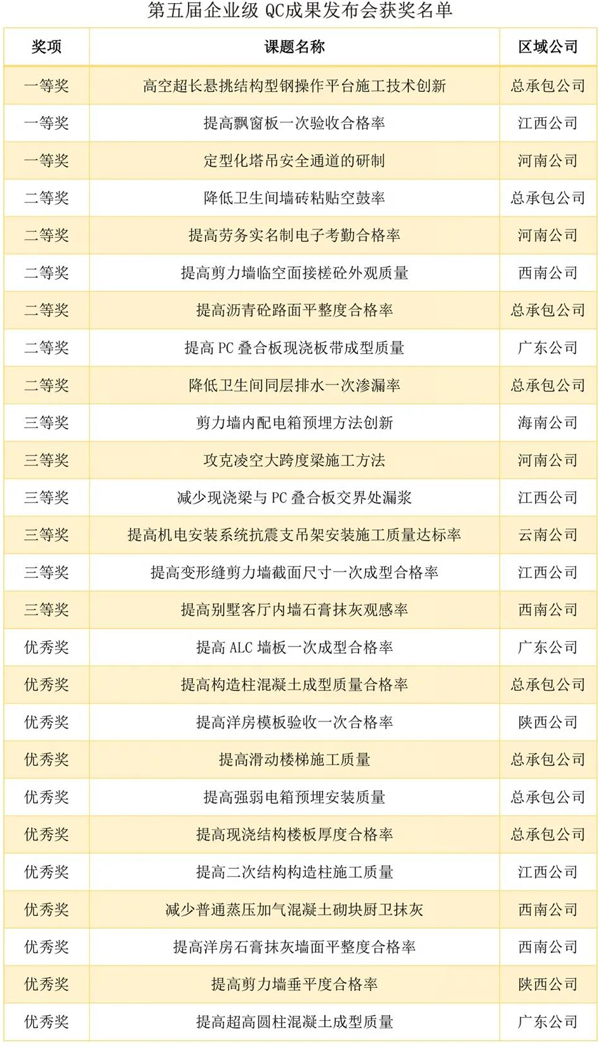 企业级 QC 成果:QC小组活动是集团坚持不懈开展的一项重要活动,对提高质量、降低成本、创造效益起到了积极的作用。企业级QC成果的发布,加大了优秀成果的展示交流,促进了创新成果的推广应用,推动集团质量管理工作始终向着健康方向发展。