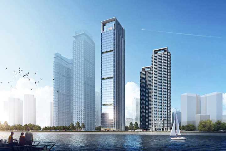 滨江御府项目位于武汉市汉阳区滨江大道与拦江路交汇处西南角,合同额约3.3亿元,总建筑面积约为13.2万平方米,由1#楼一栋办公楼、2#和3#楼两栋住宅楼、4#商业楼及地下室组成,结构形式为钢筋混凝土框架+核心筒和框剪结构。