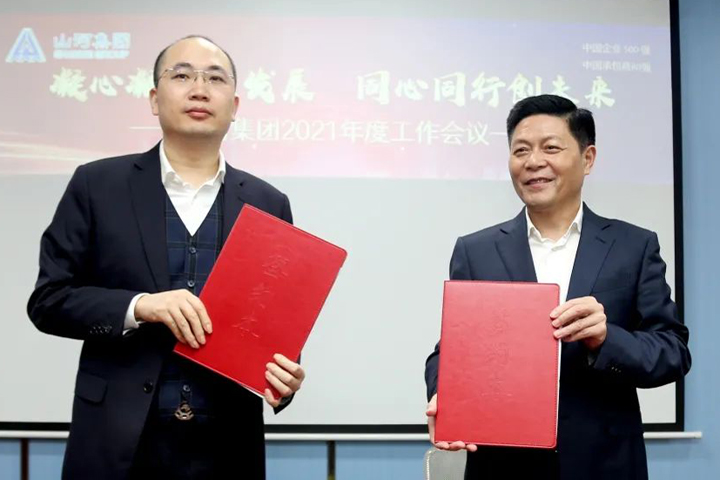 集团党委书记、董事长程理财和控股集团总裁雷桥签订年度经营目标责任状。雷桥分别和建设集团总裁常诚、地产集团董事长徐友明签订年度经营目标责任状。建设集团总裁常诚和总承包公司、各区域公司分别签订年度经营目标责任状、安全生产责任状、印章管理承诺书。