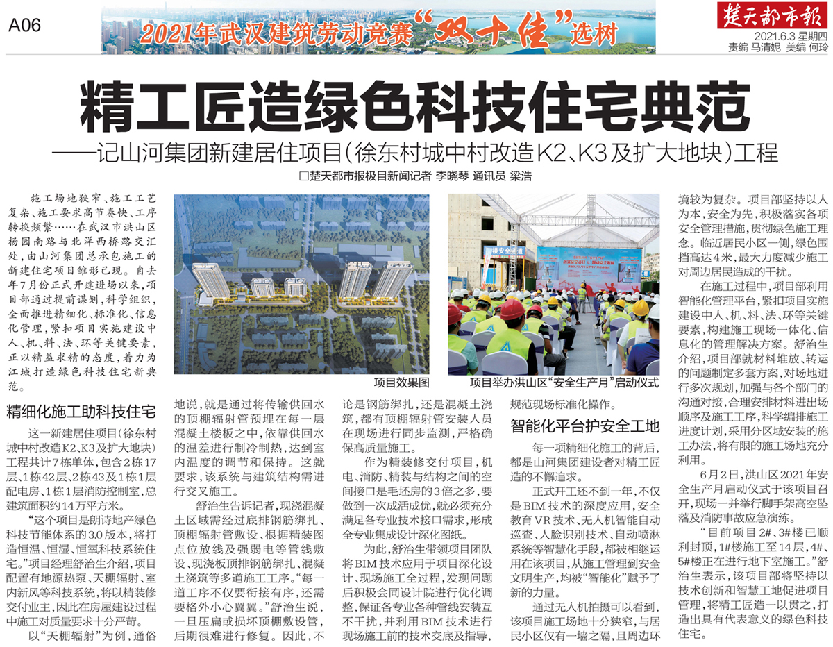 “目前项目2#、3#楼已顺利封顶,1#楼施工至14层,4#、5#楼正在进行地下室施工。”舒治生表示,该项目部将坚持以技术创新和智慧工地促进项目管理,将精工匠造一以贯之,打造出具有代表意义的绿色科技住宅。