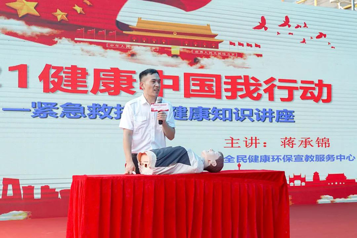 最后,受邀来到现场的专家进行了紧急救护(AED应急救护)知识讲座,通过理论知识讲解与救护技能实际操作相结合的方式,利用人体模型,现场演示了心肺复苏技能、气道异物阻塞应急救护技能和AED操作使用方法。
