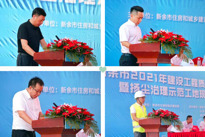 活动伊始,新余市建管局局长何祝生、新余市永越置业有限公司总经理郜文、万搏体育建设集团江西公司总经理熊善杰分别发言,联发永康状元府项目经理袁传根就项目质量安全、扬尘治理等方面进行了经验分享。