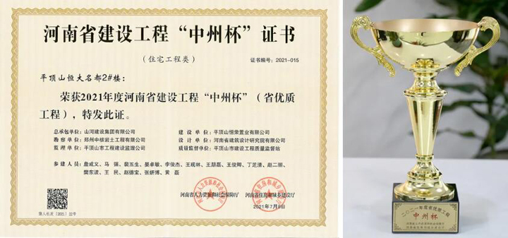 [河南公司]万搏体育集团河南公司平顶山恒大名都项目荣获“中州杯”奖