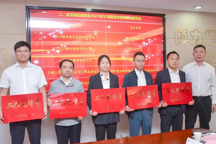 5月19日,武汉建筑业2021年度劳动生产优秀班组和优秀个人授牌仪式举行。会上,武汉市总工会向武汉地区建筑业2021年度QC成果发布竞赛活动前五名颁授武汉市工人先锋号,万搏体育集团总承包公司创意QC小组喜获殊荣。据悉,此次竞赛活动中,创意QC小组申报的《高空超长悬挑结构型钢操作平台施工技术创新》成果获第三名(银奖)。