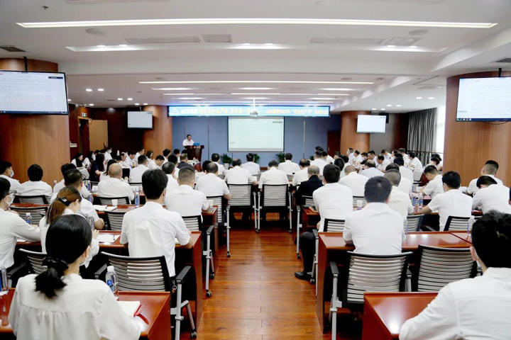 在《不忘初心,勇于担当,确保全年生产安全无事故》主题报告中,朱兴宇回顾了去年以来安全生产工作开展情况,对工程大检查、双标化达标评估、安全文明施工、危大工程管理、安全生产常态化管理、制度建设、团队建设、行业交流等方面进行了总结复盘,并结合具体事例,对工作中存在的不足提出相应改进措施。他指出,当前的安全生产形势依然严峻,要以更高的格局、更长远的眼光、更负责的态度,勇于担当、敢于碰硬、善于作为,突出责任落实、督查检查、源头治理,全力打好安全“保卫战”。