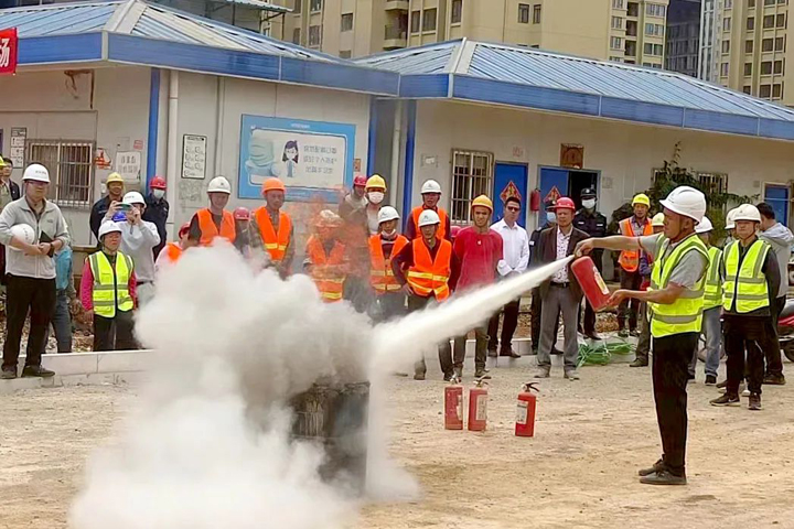 演练环节,安全管理部经理李得安向大家介绍了消防技能知识,并进行了灭火演练交底。