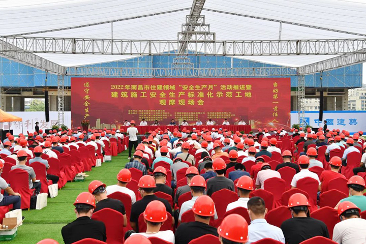 6月17日,由南昌市住房和城乡建设局主办,中建二局、中建三局、万搏体育集团等单位承办的2022年南昌市住建领域“安全生产月”活动推进暨建筑施工安全生产标准化示范工地观摩现场会顺利举行。