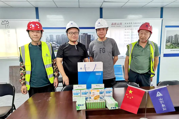 连日来,全国各地持续晴热高温,气温创下历史同期新高,多个地方的最高气温超过38℃。当前正值盛夏酷暑,建设者们仍奋战在施工一线,战高温、保进度,项目建设毫不松劲。为应对高温天气,保护劳动者的身心健康,万搏体育建设集团总承包公司组织开展“夏日送清凉”活动,为在建项目一线作业人员送去十滴水、人丹、清凉油、凉茶等防暑降温用品,让大家舒心工作、平安度夏。