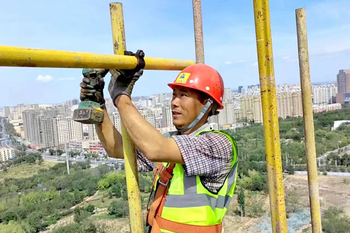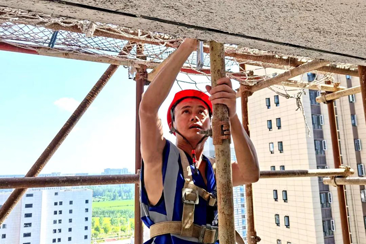 ▲脚手架上显身手