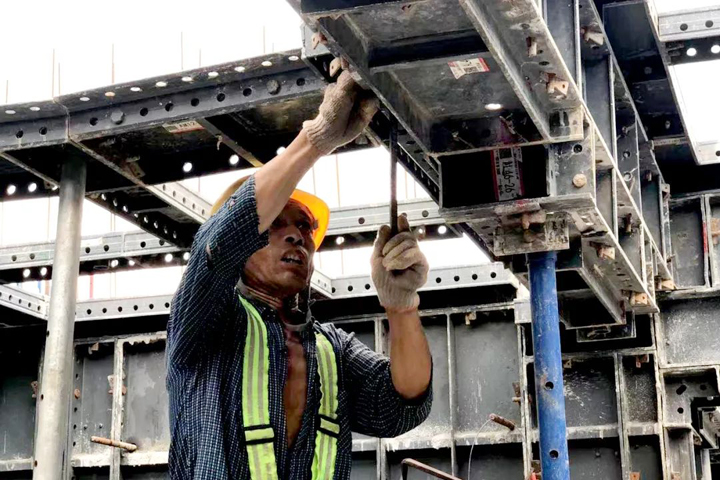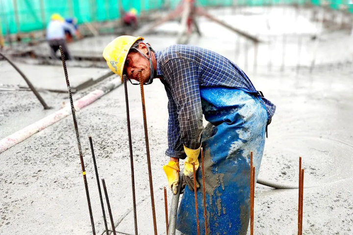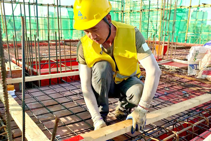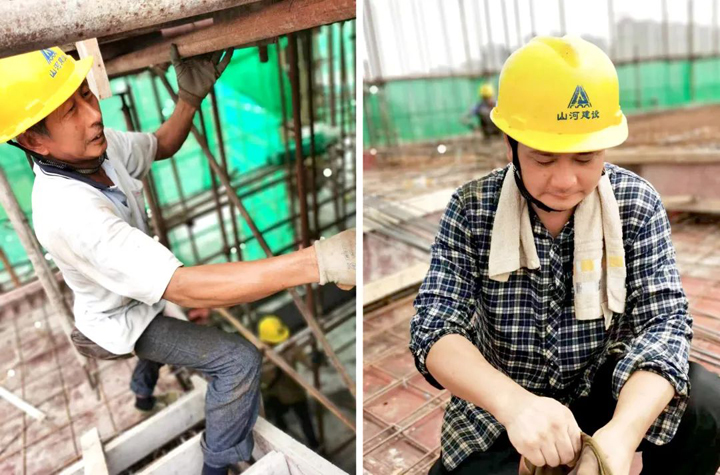 ▲黝黑的皮肤,是建设者的“标配”