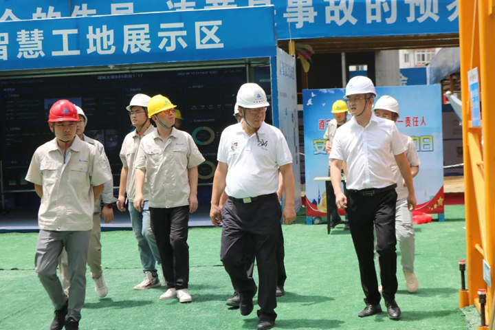 6月17日,2022年南昌市住建领域“安全生产月”活动推进暨建筑施工安全生产标准化示范工地观摩现场会在湖城大境项目施工现场举行,数百名行业代表观摩了项目的安全文明施工标准做法、新工艺应用、工序样板、智慧工地建设情况等。
