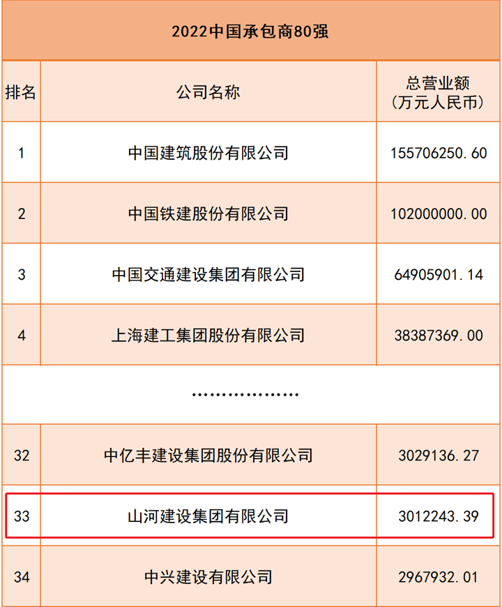 会上公布的“中国承包商80强”榜单上,万搏体育建设集团名列第33位。2022年度“中国承包商80强”以2021年度企业工程承包营业收入作为主要排名依据,展示了新一届中国建筑业行业领军者的风采。
