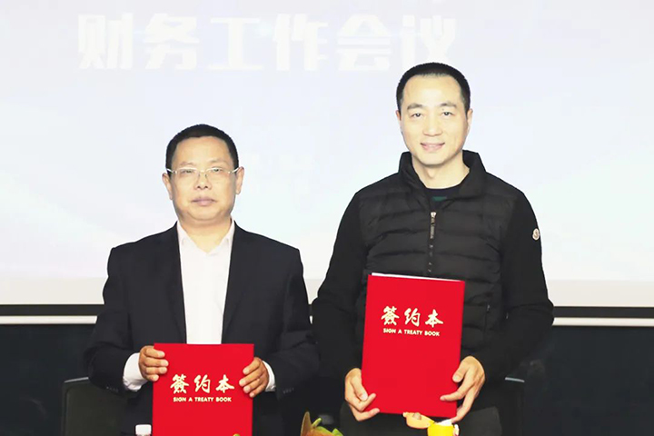 控股集团总裁李洪和李先宝签订财务团队年度目标责任状。李先宝和融资及核算监管、税管、资管业务负责人签订年度目标责任状。