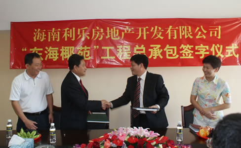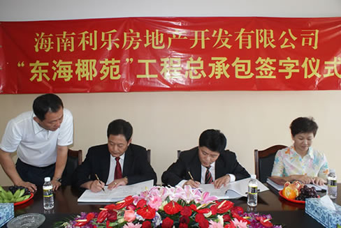 10月31日, 万搏体育建设集团有限公司和海南利乐房地产开发有限公司在海口市半山花园海天商务楼举行“东海椰苑”项目签字仪式。
